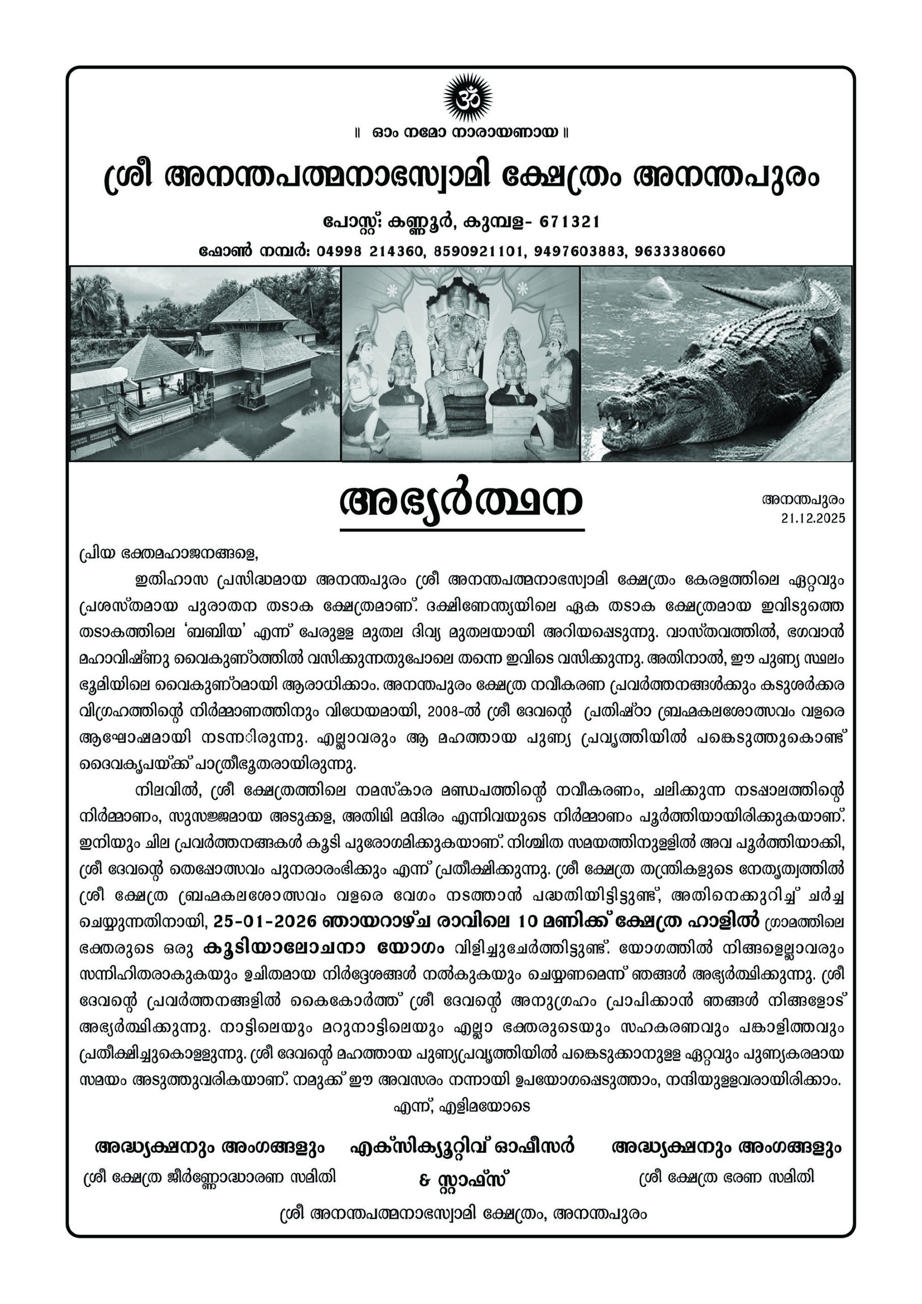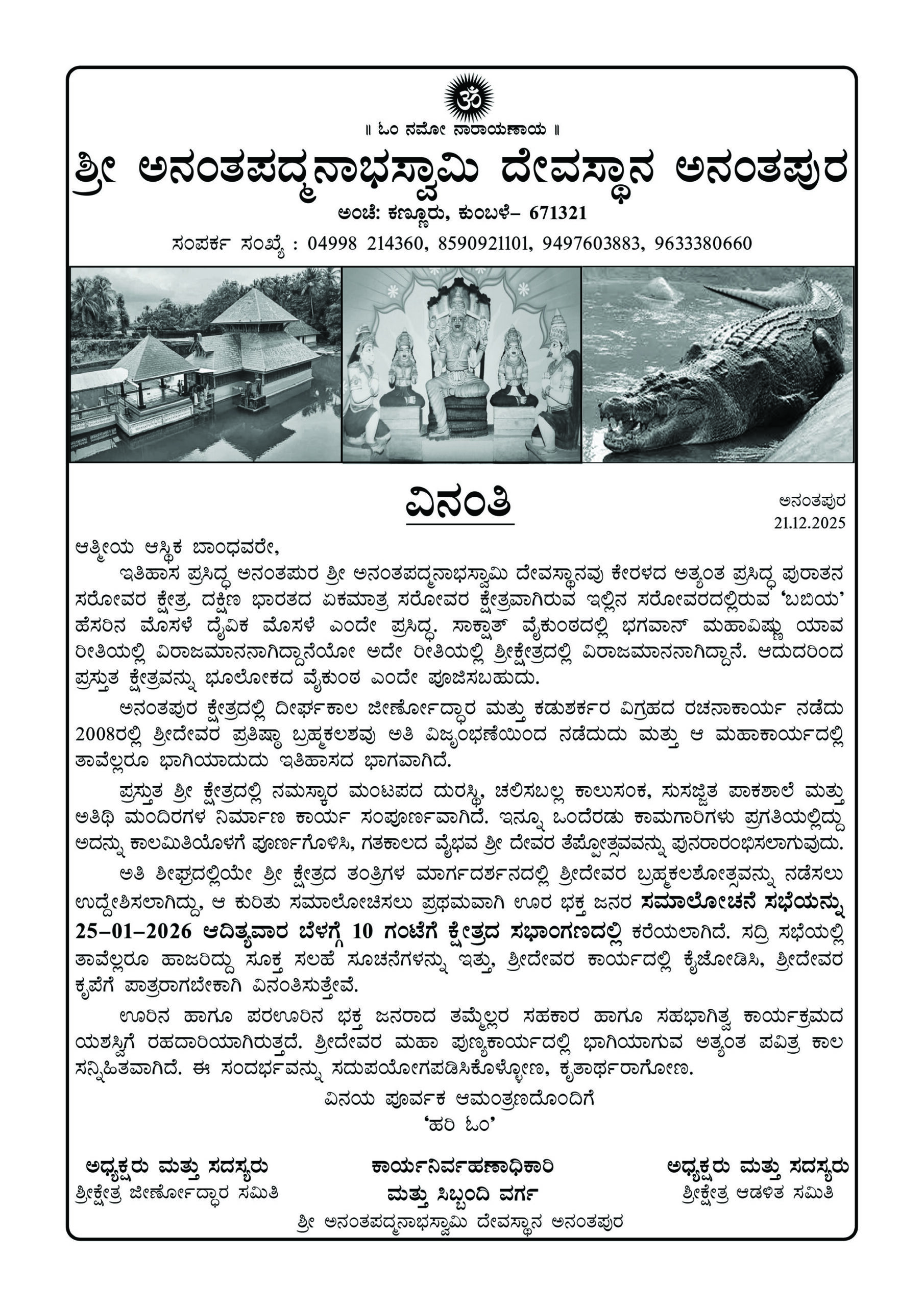 ಬ್ರಹ್ಮಕಲಶೋತ್ಸವ ಸಮಾಲೋಚನಾ ಸಭೆ 25-01-2026